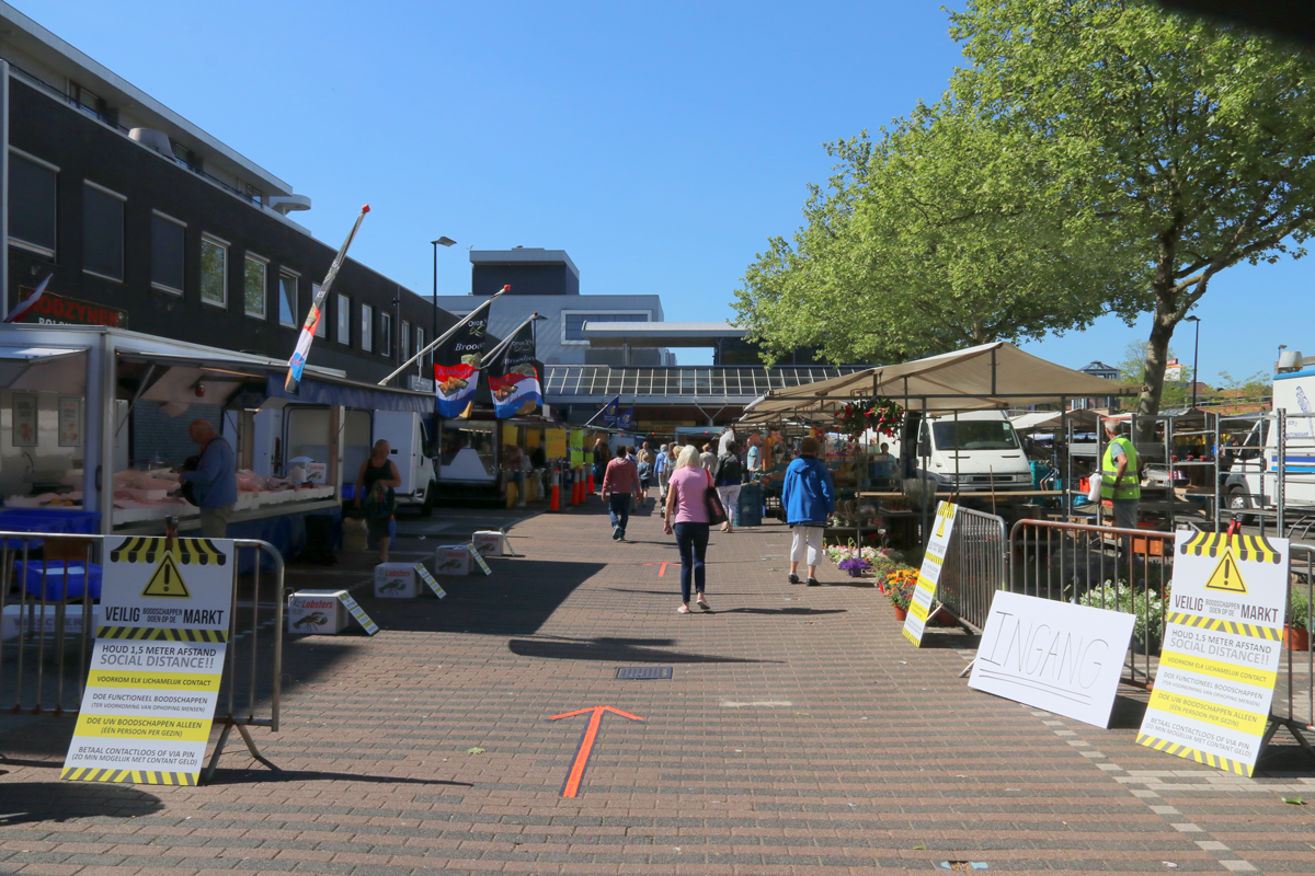 Looprichting en afstand houden op de weekmarkt